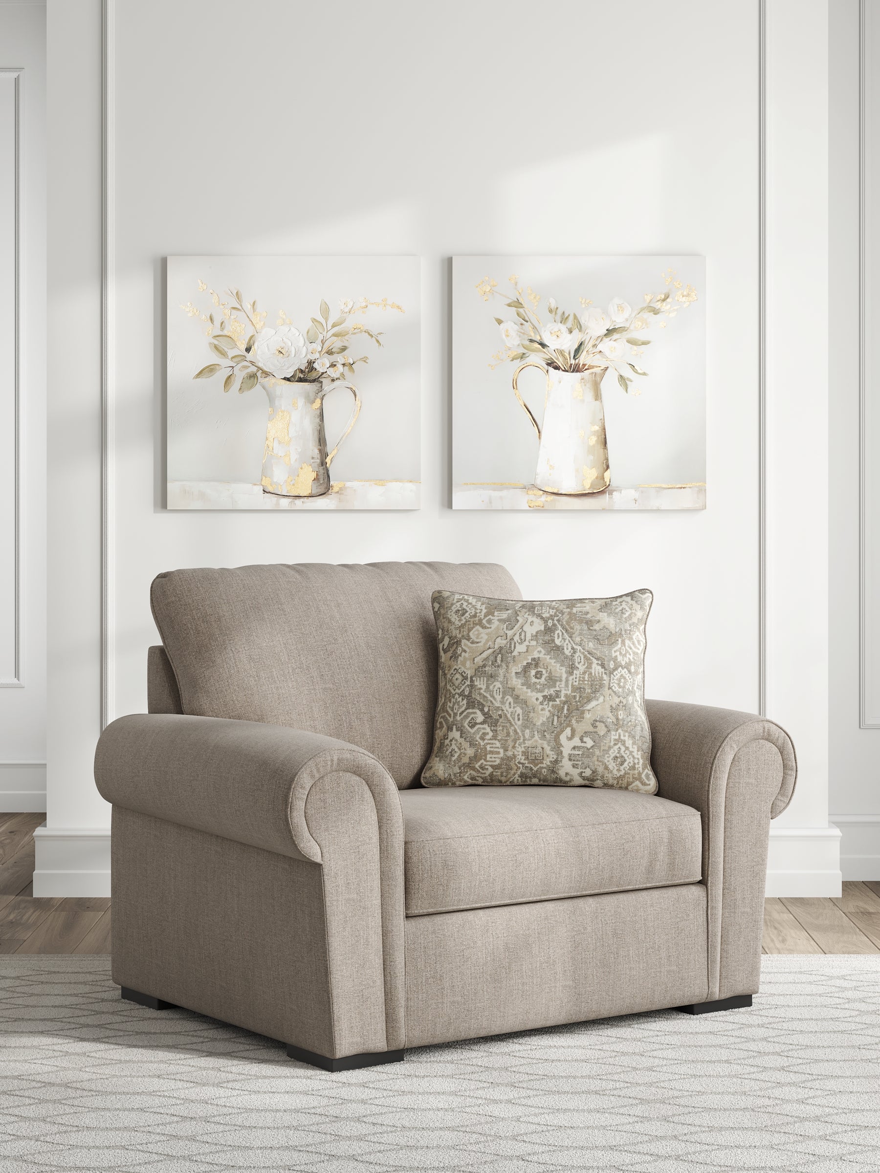 Looking for that perfect blend of timeless and cozy? This oversized chair delivers both, with classic roll arms and soft chenille upholstery that feels like a warm hug. There's plenty of space to curl up with a good book or stretch out for an afternoon nap. This casually cool chair is perfect for anyone who loves traditional style but doesn't want to sacrifice modern-day comfort.
